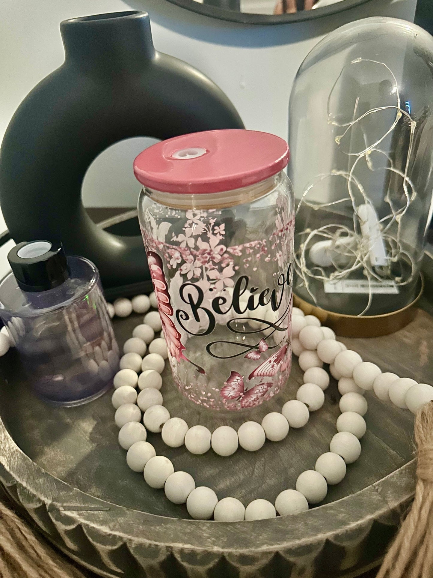 ¡Esta copa de vidrio Believe te hará sentir como si pudieras hacer cualquier cosa! Ya sea un sorbo de tu bebida favorita o un recordatorio para mantenerte motivado, esta taza será una fuente de inspiración y alegría. ¡Eso es algo en lo que vale la pena creer!